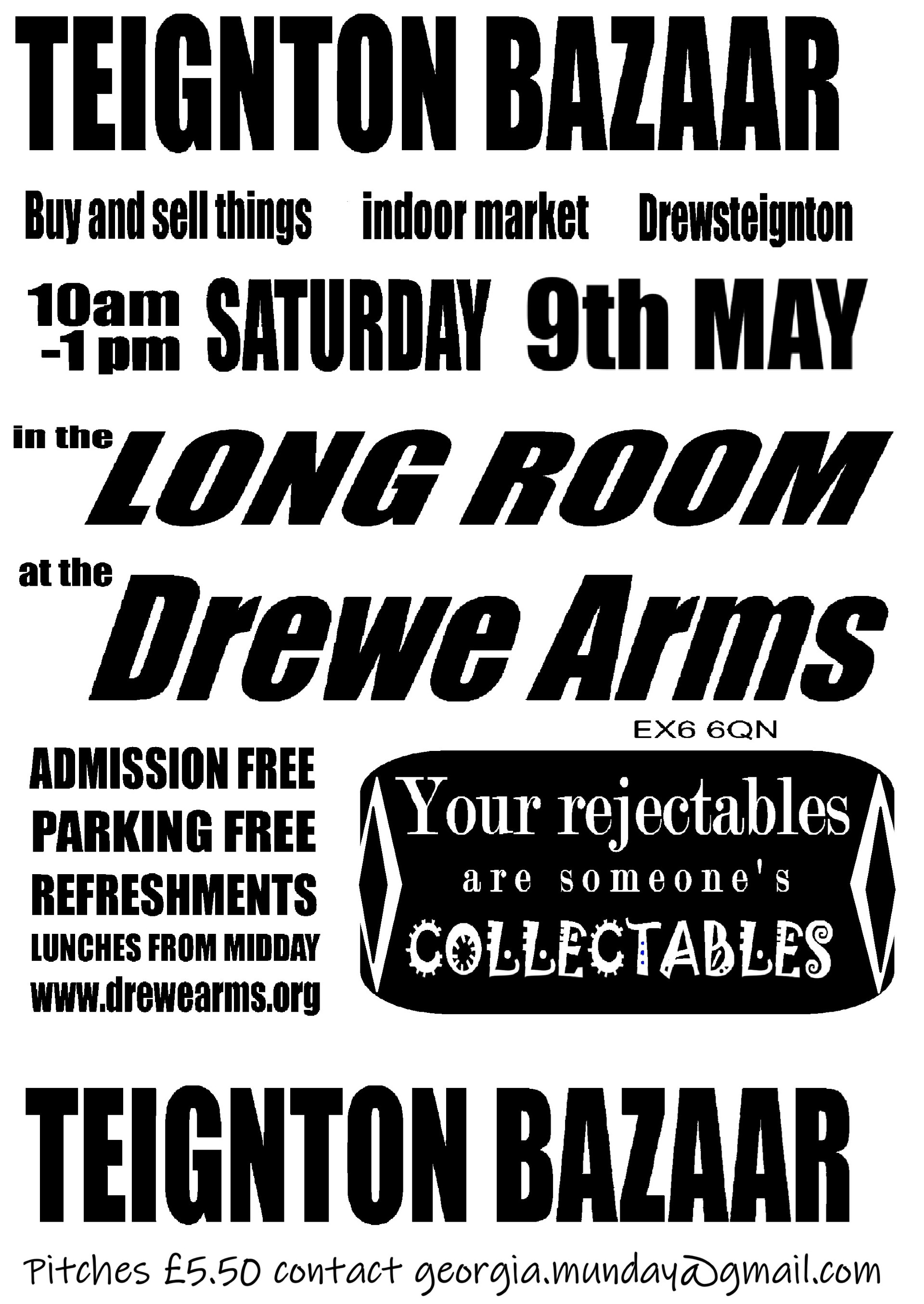 Saturday 9th / 10:00 - 13:00 / Long Room, Drewe Arms, Drewsteignton